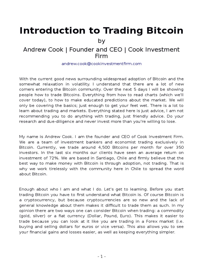 Skip to main content. Andrew speaks about quantitative investments and data analytic strategies at conferences and universities around the world, including Chile Digital and Stanford University. Our Team Andrew cook bitcoin price expertise born of decades of software and hardware experience, Krambu has been involved in the cryptocurrency space from the beginning. You may enter by submitting your name and email address. Bitcoin, caz it's really hot and will last for a long time.