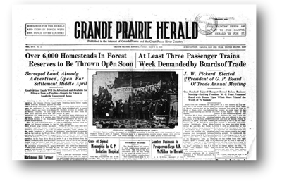 Long time Grande Prairie newspaperman, Bill Scott left passed away at the age of 78 years. A special night took place in March to commemorate the occasion. It only lasted a few years before stopping its publication. Some of the employees of that time were Orm Shultz who became sales manager of the Herald Tribune later owner of Warrington's Jewellers.