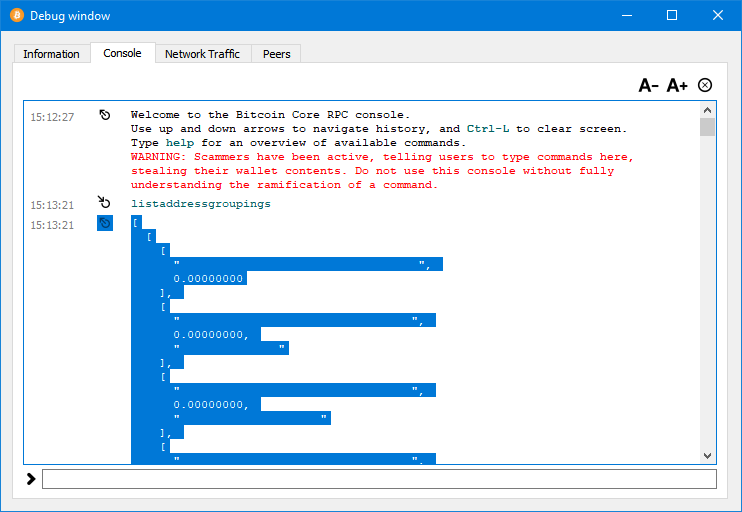 Bitcoin commands information