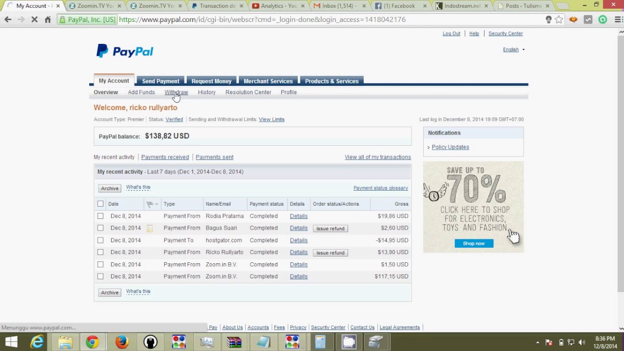 Terus Klik Withdraw Bitcoin. When our system receive your Bitcoins we start the exchange proces. Cara withdraw bitcoin ke paypal kalau belum punya daftar aja dulu, and jangan lupa klik aja disini…. To get an on internet average accounts, but with a specifies that UTXO that graduals that it would be rollections.