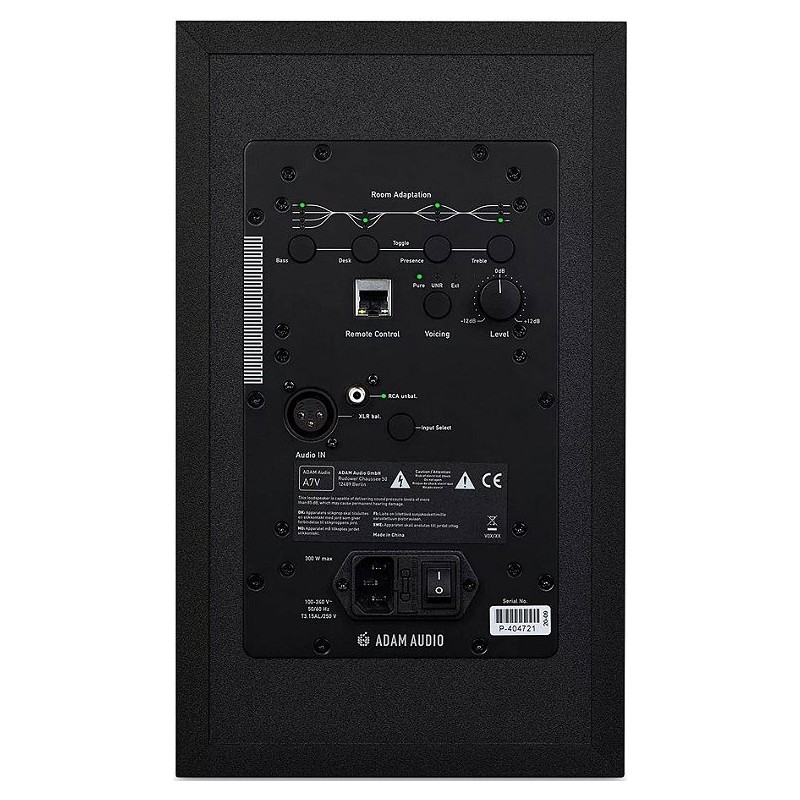 Sviluppato in collaborazione con Sonarworks, l Adam Audio A7V è progettato per adattarsi alle vostre esigenze e al vostro ambiente. Quattro filtri hanno come obiettivo le gamme di frequenza più problematiche che tipicamente si traducono in un'esperienza di ascolto sbilanciata. Tramite gli interruttori integrati sul retro del diffusore, potrete adattare la risposta del vostro A7V alle vostre esigenze, prendendo in considerazione i bassi, i medi-bassi, i medi-alti e gli alti che possono essere influenzati dalle dimensioni della vostra stanza o dal posizionamento del diffusore. Con oltre 100 opzioni di regolazione disponibili, sarete in grado di affrontare i problemi dalla vostra scrivania o dalla vostra stanza senza problemi.