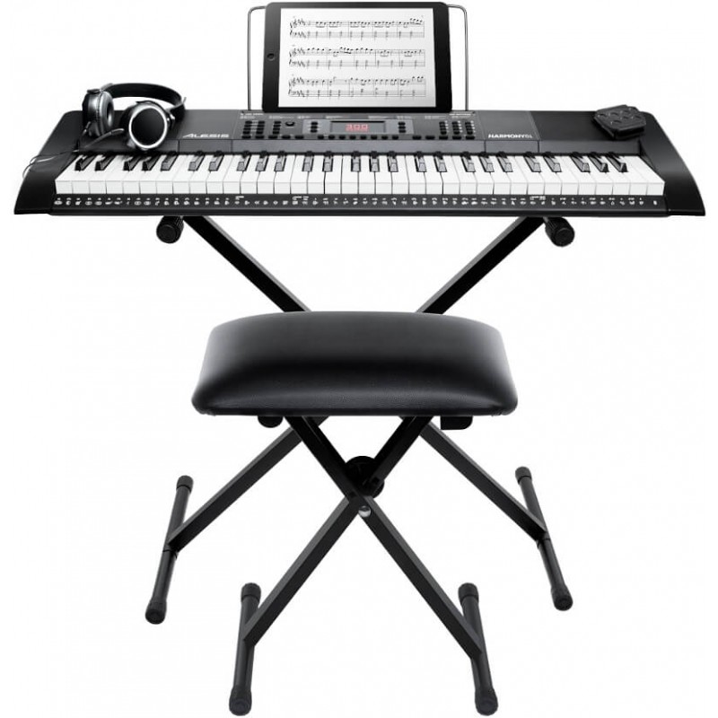 Include tutti gli accessori di cui hai bisogno per iniziare e imparare a suonare oggi. Harmony 61 MK3 è dotato di un supporto facile da montare, una panca con tre impostazioni di altezza regolabili, cuffie che disattivano automaticamente gli altoparlanti per esercitarsi in privato, un pedale sustain, un leggio per contenere gli spartiti e un adattatore di alimentazione.