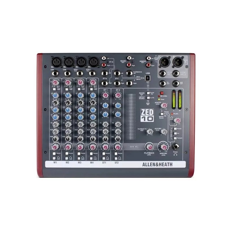 Allen & Heath presenta la nuova gamma di mixer USB ZED-10 e ZED-10FX per performance dal vivo, la registrazione e la produzione, ultra compatti costruiti per uno standard professionale. ZED-10 dispone di due ingressi ultra innovativi di Classe A FET (Field Effect Transistor) che consentono ad uno strumento di essere collegato direttamente al mixer, emulando la valvola / circuiti di ingresso tube che si trovano comunemente sugli strumenti combo o amplificatori, c'è anche un interruttore 26dB di gain ideale per gli strumenti con uscita pickup molto bassa. Lo ZED-10 può anche gestire fino a quattro microfoni e due sorgenti stereo, con la compatibilità del lettore MP3, dispone di 2 uscite separate track / record e un ingresso stereo per la riproduzione con 2 tracce di brani musicali o intervallate da un lettore CD, uscite stereo XLR main con insert, uscite monitor per il controllo globale con cuffie e altoparlanti separati, alimentazione microfono phantom 48V, livello DI di commutazione per mixaggio sub, presente anche send e return USB per la registrazione su Mac o PC, la riproduzione e gli effetti. E' equipaggiato con un EQ a 3 bande sugli ingressi mono e 2 bande sui canali stereo, lo ZED-10 ha una ricchezza di caratteristiche professionali standard, tra cui alto gain e basso rumore dei pre-amplificatori, due mandate AUX (uno pre e uno post fade) per monitor e FX, un separato switch bus stereo, che può essere indirizzato da qualsiasi canale per creare un bus selettivo di registrazione.
