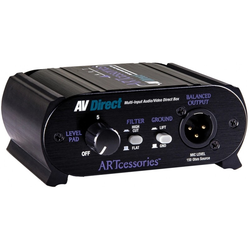 Per ridurre interferenze e ronzii, il pannello frontale è dotato di ground lift e di filtro ad alta frequenza, mentre l'uscita XLR bilanciata è isolata tramite trasformatore. Il circuito passivo non richiede batterie o alimentatore esterno, mentre il contenitore metallico offre una protezione durevole in una dimensione compatta; che si debba collegare un lettore CD o DVD, un computer o un dispositivo mobile, AV Direct fornirà sempre un audio nitido e cristallino al proprio setup audio.
