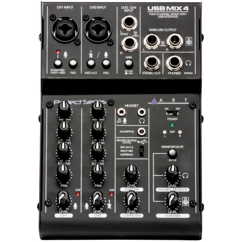ART USB Mix4 è un mixer leggero e portatile ideale per applicazioni e musicisti che hanno bisogno di una soluzione all in one con ingressi microfonici, di linea e scheda audio, tutto in un unico prodotto. Con i suoi 6 ingressi, di cui due microfonici/linea, uno commutabile per ingresso Hi-z per chitarra/basso, la connessione da/verso il computer, il mixer USBMix4 è abbastanza versatile da adattarsi a molte situazioni in studio e nei live.