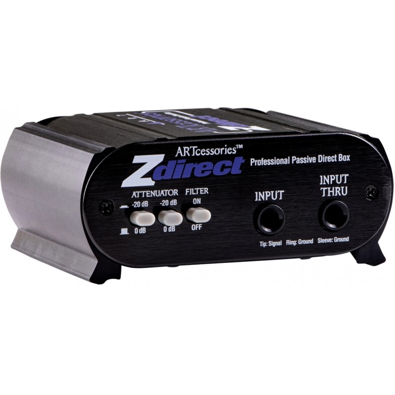 Art ZDirect un accessorio utile in studio e nel liveset Art Zdirect è una DI passiva di alta qualità che permette di collegare qualsiasi segnale audio di strumenti o linea agli ingressi microfonici di un mixer o ad altri ingressi bilanciati; utilizza un trasformatore di isolamento ad alte prestazioni per garantire una sorgente bilanciata a bassa impedenza completamente isolata. Art Zdirect ha una risposta in frequenza estremamente ampia e lineare ed è in grado di gestire segnali d'ingresso con livelli elevati, mantenendo comunque isolata l'uscita bilanciata a bassa impedenza. Questo assicura alla Zdirect un suono pulito e neutro con una grande varietà di sorgenti di segnale, anche con cablaggi molto lunghi in ambienti ad alto rumore elettrico. In quanto dispositivo passivo, la Zdirect non necessita di batterie o alimentazione phantom.