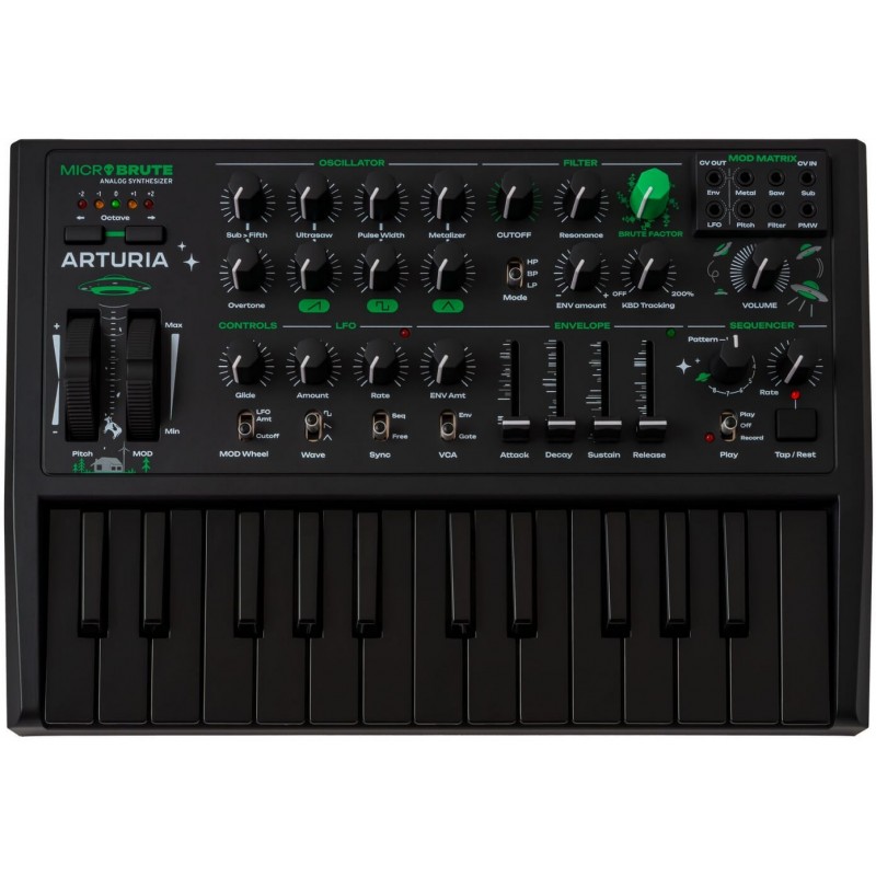 Arturia rende disponibile una nuova edizione limitata del suo iconico sintetizzatore analogico: il MicroBrute "All Black". Questa versione si distingue per l'elegante finitura space black, ma mantiene inalterate tutte le caratteristiche tecniche del modello originale. Il MicroBrute è da anni uno dei sintetizzatori portatili più diffusi tra i produttori di musica elettronica, apprezzato per la sua compattezza, la robustezza e soprattutto per la qualità sonora che riesce a offrire grazie al percorso del segnale completamente analogico. Progettato seguendo la filosofia del suo fratello maggiore MiniBrute, questo sintetizzatore unisce semplicità d’uso e potenza espressiva. Il cuore dello strumento è un oscillatore analogico con forme d’onda multiple, affiancato dal celebre filtro Steiner-Parker multi-mode, rivisitato da Nyle Steiner, capace di restituire un suono ruvido, caldo e aggressivo. La presenza della matrice di modulazione, denominata MOD MATRIX, e dello step sequencer permette una programmabilità avanzata e una libertà creativa impensabile per strumenti della stessa fascia di prezzo. Il MicroBrute integra tutte le principali funzioni del MiniBrute, inclusi collegamenti MIDI, USB e CV/Gate, e sfrutta anche la funzione Brute Factor per aggiungere saturazione e modellare ulteriormente il suono. L’architettura comprende un LFO completo e un inviluppo ADSR standard, che, grazie alla MOD MATRIX, possono essere liberamente instradati e utilizzati anche per controllare strumenti esterni, ampliando così le possibilità di integrazione in qualsiasi setup modulare o ibrido. In un panorama dominato da dispositivi digitali con interfacce complesse e menù profondi, il MicroBrute continua a distinguersi per il suo approccio diretto, tattile e immediato alla sintesi del suono. È uno strumento pensato per i puristi dell’analogico, ma anche per chi cerca uno strumento potente e flessibile, in grado di offrire un’esperienza musicale autentica in un formato estremamente compatto. Con questa nuova edizione “All Black”, il MicroBrute si rinnova nell’estetica, senza rinunciare a ciò che lo ha reso uno dei sintetizzatori analogici più amati degli ultimi anni.