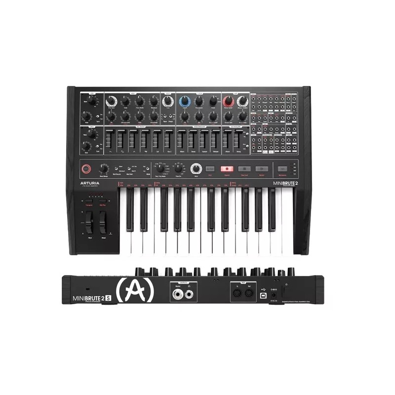 Versione Noir del MiniBrute 2 è il sintetizzatore della casa francese pensato e progettato per interfacciarsi alla perfezione con il mondo esterno. Con un forte carattere "full analog" e potenti funzionalità per scolpire il suono in ogni dettaglio, la macchina ha in dotazione arpeggiatore, step-sequencer, una versatile patch bay modulare e naturalmente l’immancabile Brute Factor. Intuitivo, accessibile e divertente, le potenzialità di sintesi del MiniBrute 2 sono estremamente semplici da gestire ed apprezzare, garantendo soddisfazione immediata e senza limiti. Il controllo è istantaneo per ogni parametro: oscillatori, filtri, inviluppi, LFO, ogni funzione è a portata di mano per un utilizzo molto intuitivo. Dalla creatività ed immaginazione di chi lo utilizza, al suono desiderato finale, tutto in un unico percorso rapido, libero ed estremamente gratificante. La novità principale della nuova versione di quello che è stato e resterà uno dei sintetizzatori di maggiore successo della storia della musica elettronica, è data da una potente matrice di modulazione in grado di garantire un’interfaccia potente e versatile con il mondo esterno, con moltissime sorgenti e destinazioni. Sia che si voglia sperimentare con i parametri interni della macchina, sia che si voglia effettuare connessioni all’interno di un setup modulare o mettere in sync altri dispositivi con il sequencer integrato, le possibilità sono pressoché illimitate. Il MiniBrute 2 ha in dotazione la stessa ottima tastiera del MatrixBrute con aftertouch, che può essere trasmesso anche in routing attraverso la matrice di modulazione aprendo in questo modo nuovi scenari per la performance e la creatività. MiniBrute 2 integra anche un arpeggiatore con modalità multiple, tap tempo e sync solido e affidabile, così come un intuitivo step-sequencer per fornire il massimo delle possibilità di espressione.