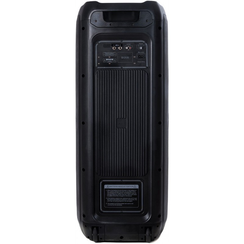 Uno cassa amplificata con batteria integrata pensata per eventi, feste e performance live, unendo robustezza, autonomia e funzionalità avanzate. La serie dj party speakers si caratterizza per approccio professionale ad una tipologia di prodotti presenti sul mercato spesso con limitate caratteristiche funzionali e acustiche. Dal punto di vista funzionale innanzitutto incorpora un ricevitore per 2 microfoni wireless (1 sul modello di J 107) che permette, acquistando separatamente uno dei microfoni della serie W/L, di utilizzare immediatamente e senza nessuna necessità di montare componenti aggiuntivi, uno più microfoni wireless. Questo modelli è utilizzabilile a 230V oppure con la batteria incorporata ricaricabile, ampliando quindi in modo significativo le opzioni di utilizzo in tutte quelle situazioni in cui l'alimentazione a rete sia problematica. A queste peculiarità si va ad aggiungere una riproduzione del suono particolarmente curata, con un’ampia estensione sia alle basse che alle frequenze: un suono quindi completo e accattivante, in grado di soddisfare ogni esigenza di ascolto. Il modello DJ 212 S a due dettagli che lo rendono ulteriormente unico sul mercato e cioè: se, come sorgente abbiamo un mixer o una console DJ e utilizziamo un solo diffusore, possiamo collegare i due canali in uscita alle entrate Line in R e Line in L in questo modo i segnali si sommano e il diffusore li riproduce entrambi. Se utilizziamo due diffusori possiamo ottenere un effetto stereo, collegando l’uscita right della sorgente al solo connettore line in R (diffusore destro) e l'uscita Lett al connettore line L (diffusore sinistro). Infine a garanzia di lungo funzionamento a batteria, questo modello ha anche la connessione per una batteria esterna che allunga ulteriormente i tempi delle performance.