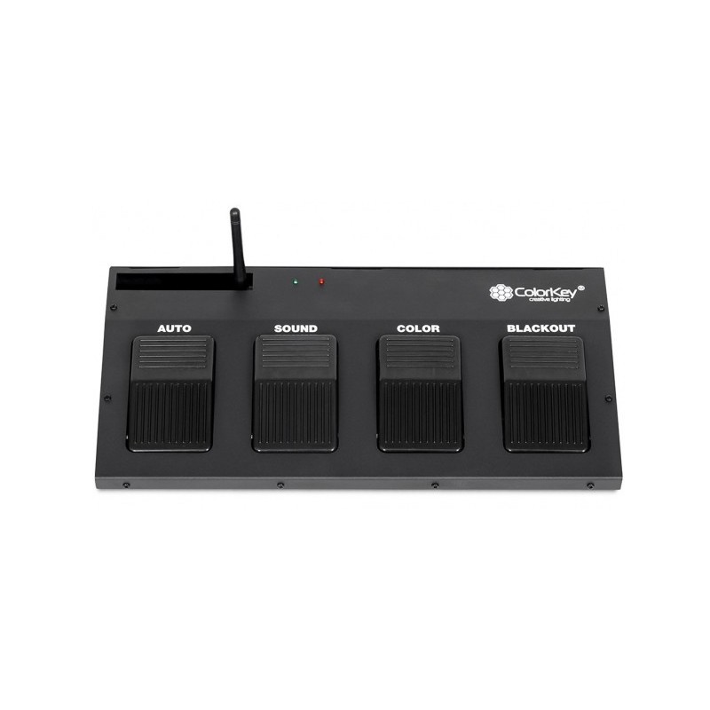 attraverso la pedaliera Footswitch controlla le tue PartyBar Mobile wireless con i 4 comodi pedali - a disposizione 4 programmi per il controllo della barra - Auto, per impostare le luci secondo un programma automatico - Sound, per impostare le luci a tempo di musica - Color, per scegliere uno dei colori statici disponibili - Blackout, per spegnere le luci della tua PartyBar - con le 4 batterie di tipo AAA sostituibili al suo interno, puoi utilizzare Footswitch per diversi eventi senza necessità di doverle sostituire - grazie al potente trasmettitore integrato è possibile controllare, senza bisogno di alcun cavo, più PartyBar a distanza fra esse