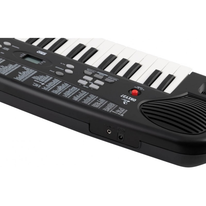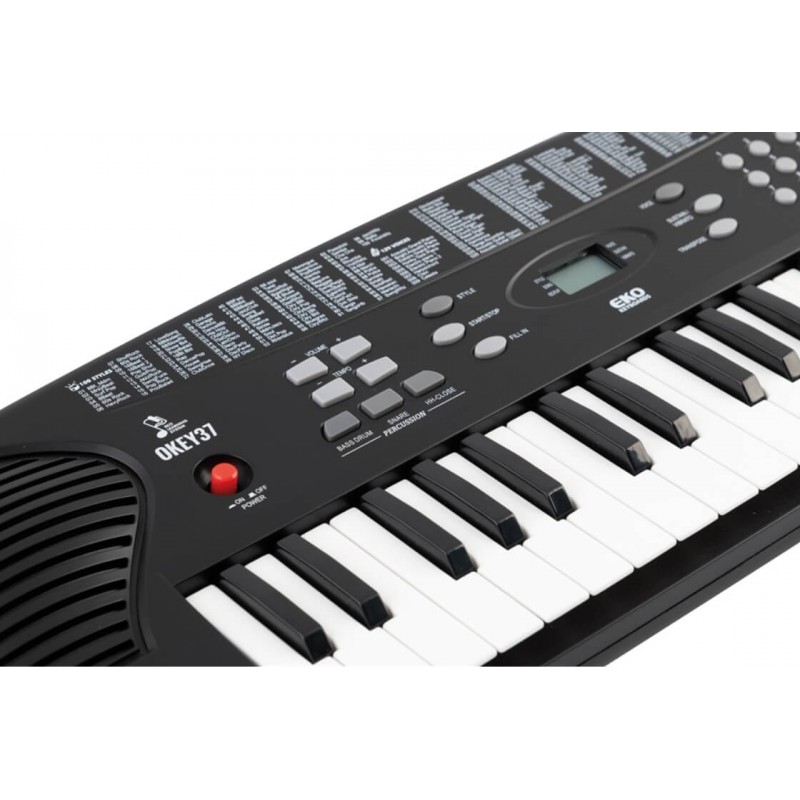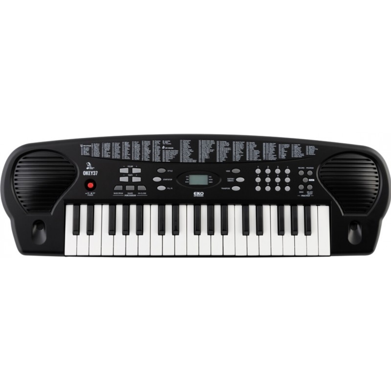 Okey 37 è la tastiera di Eko Keyboards composta da 37 tasti e perfetta per imparare a suonare lo strumento. Questa tastiera è un valido strumento per i piccoli musicisti che iniziano suonare le prime melodie. I suoi 10 Brani Demo, i 129 Suoni disponibili e un elenco di 100 Stili il tuo bambino potrà dare libero sfogo alla sua creatività. il pannello di controlli frontali offre numerose funzionalità tra cui controlli Volume, Tempo, Percussioni, Registrazione, Riproduzione, Transpose, ecc. Tutto può essere tenuto sotto controllo grazie al Multi Display ben visibile al centro della tastiera. Il pannello posteriore presenta oltre alla presa di alimentazione anche un'uscita cuffie per suonare in modalità silenziosa, senza disturbare il resto della famiglia. Inoltre le sue dimensioni ridotte offrono una facile trasportabilità.