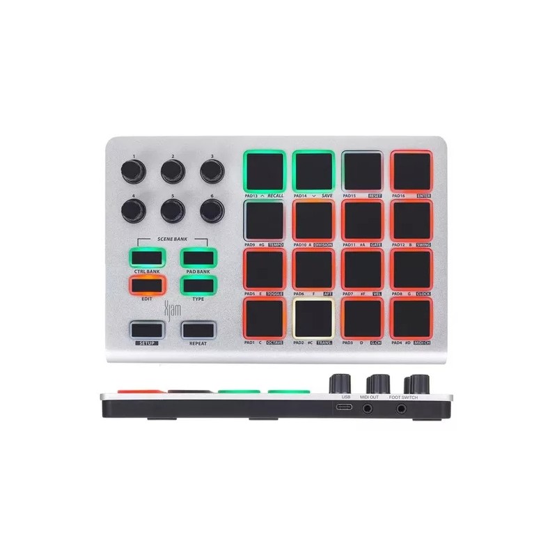 Xjam è un piccolo controller MIDI plug-and-play completo. Grazie al suo solido telaio in alluminio, Xjam è meravigliosamente portatile e ideale per l'uso fuori dallo studio su dispositivi mobili. Grazie alla matrice di pad 4x4, ai 6 encoder infiniti e ai 16 pad scorrevoli, offre un'esperienza di esecuzione piacevole ed espressiva. Inoltre, Xjam offre 48 configurazioni invece delle solite 16 scene da salvare. I suoi pad morbidi e ultrasensibili con aftertouch polifonico sono versatili come l'Xjam in generale. I 16 pad RGB inviano anche messaggi MIDI CC, MIDI Program Change o MMC. Sono presenti anche 6 encoder infiniti di alta qualità, che possono essere utilizzati in vari modi. Oltre a controllare i messaggi MIDI CC, gli encoder possono essere assegnati per inviare messaggi di intonazione, di cambio di programma MIDI o persino di aftertouch. L'Xjam è dotato di un potente software di editing per adattarsi perfettamente alle vostre esigenze. E' presente anche una presa TRS-MIDI Out per inviare segnali a generatori di suono esterni.