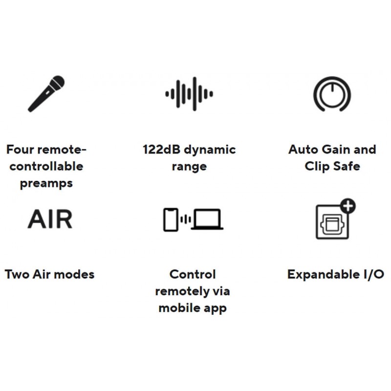 4 Preamplificatori Microfonici di Alta Qualità: Con un impressionante range di guadagno di 69 dB, i preamplificatori a bassissimo rumore della Scarlett 18i16 sono perfetti per registrazioni cristalline e precise.