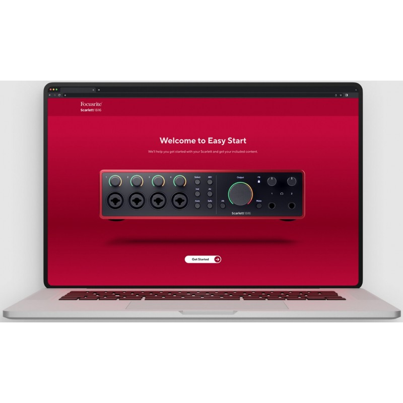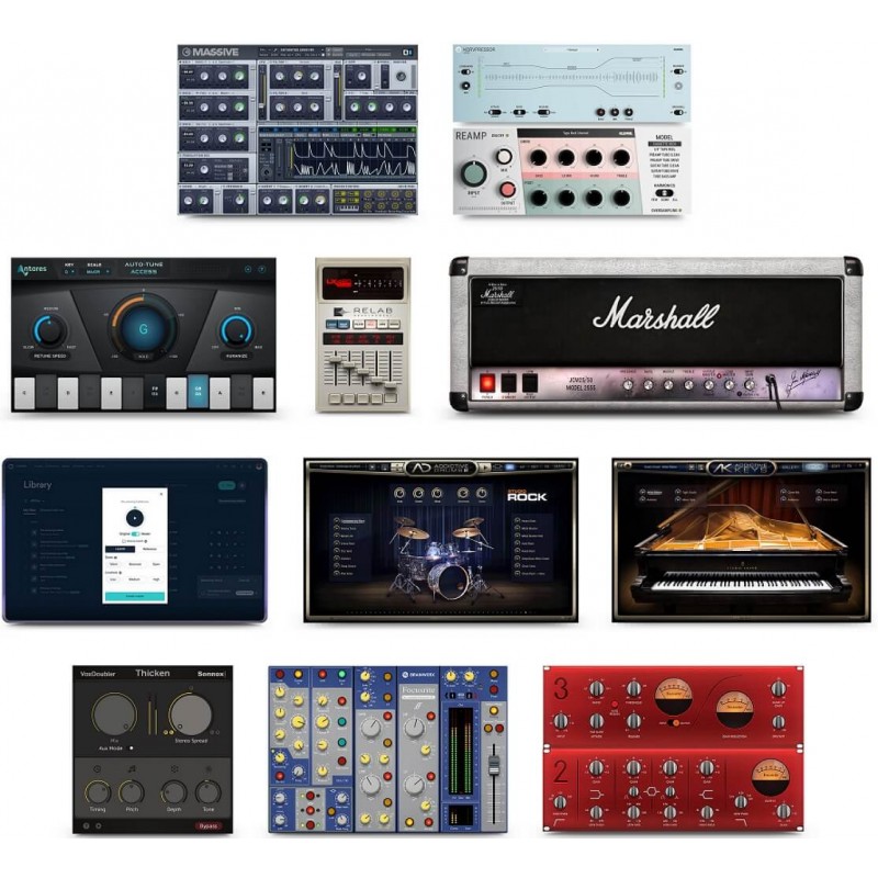 software in bundle: Ableton Live Lite; abbonamento di tre mesi a Pro Tools Artist, tre mesi di Splice Sounds; Antares® Auto-Tune® Access; Softube® Marshall® Silver Jubilee 2555; Native Instruments® MASSIVE; Sonnox VoxDoubler; Landr Studio, con cinque master gratuiti; Brainworx® bx_console Focusrite SC; Focusrite Red 2 & 3 Plug-in Suite; XLN Audio® Addictive ; XLN Audio® Addictive Drums 2: Studio Rock; Relab’s LX480 Essentials; FAST Balancer