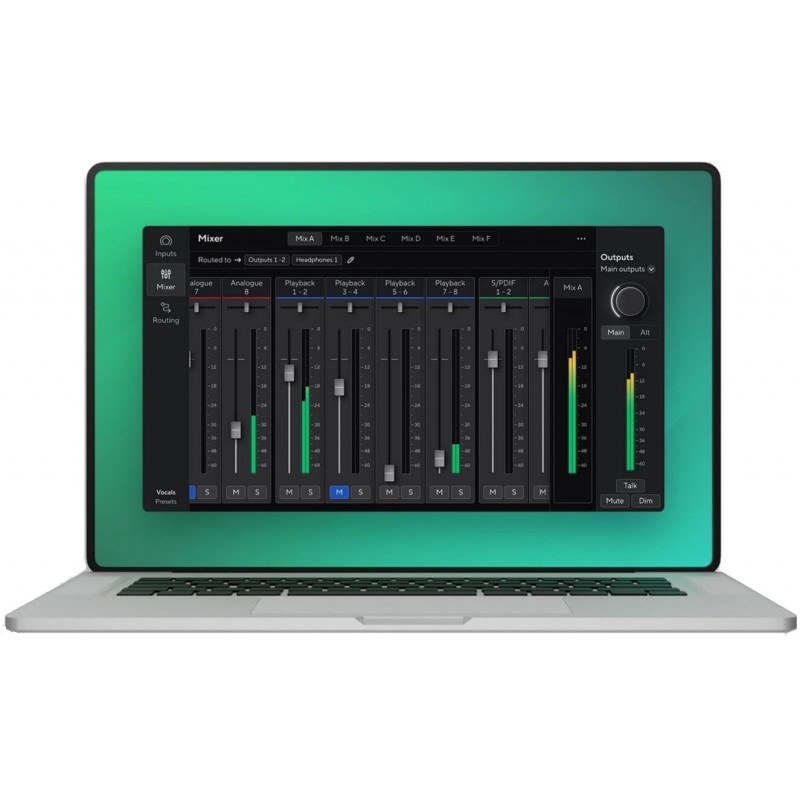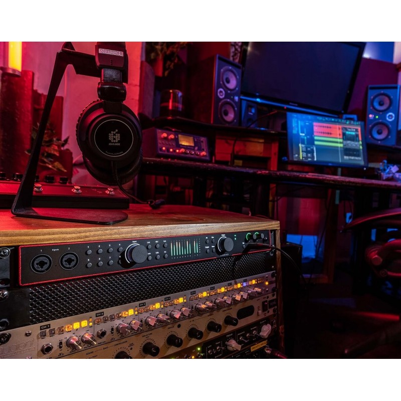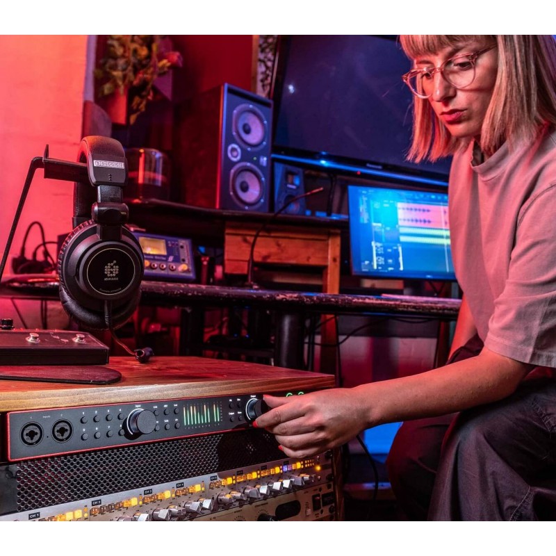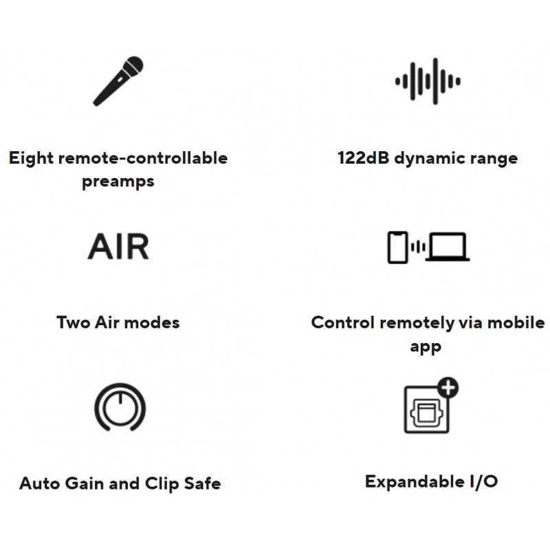 I preamplificatori di 4ª generazione offrono un guadagno importante di ben 69dB, consentendo di catturare le performance più dinamiche e con risultati di ottima qualità, con qualsiasi microfono. Due ingressi Hi-Z per strumenti e otto ingressi di linea offrono una connettività completa, per mantenere collegata la tua strumentazione esterna. Le uscite garantiscono una riproduzione precisa, priva di distorsione. I due nuovi amplificatori per cuffie progettati su misura sono capaci di gestire facilmente anche le cuffie ad alta impedenza.