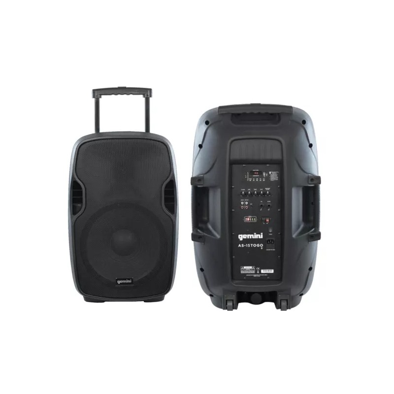 L'AS-15TOGO offre un'ampia gamma di suoni eccezionali grazie a un driver da 15" a bassa frequenza ad escursione ampia, e ad un driver HF a compressione. Il potente amplificatore e integrato da 2000W (picco ) in Classe AB muove gli altoparlanti con la più bassa distorsione possibile, fornendo all'AS-15TOGO una risposta in frequenza lineare da 55Hz a 18kHz. L'AS-15TOGO possiede un proprio lettore multimediale interno, una funzionalità Bluetooth per lo streaming di musica wireless perfetto quando sei in viaggio. Ancora di più, consente di riprodurre i propri file digitali da chiavette USB o schede SD. La batteria interna è in grado di offrire ore di intrattenimento cordless e la ricarica è semplice. Basta collegare l'altoparlante alla rete elettrica usando l'alimentatore incluso o qualsiasi altra fonte di alimentazione da 12V - come la batteria di un veicolo. Personalizza il suono con il mixer audio professionale integrato direttamente sul pannello posteriore. Dotato di comandi EQ, ingressi microfono e chitarra, ed effetti echo che conferiscono alla tua musica un suono davvero professionale. Inoltre, gli ingressi e le uscite AUX consentono di collegare qualunque sorgente audio di linea che si possa pensare. Come tutti i prodotti della serie "TOGO" Gemini, questo altoparlante dispone di una maniglia a scomparsa integrata, ruote incorporate e opzioni per il montaggio su stativo.