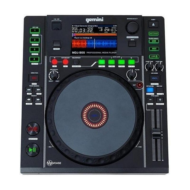 con il grande schermo a colori da 4,3" MDJ-900 è il dj player di punta di casa Gemini, con feedback visivo in tempo reale delle principali informazioni della traccia musicale (titolo, tempo, BPM, pitch e forma d'onda multi-colore a grandezza intera...); ma non solo: pitch fader da 100 mm con range da 4% a 100% per mixare con la massima precisione; modalità LINK per collegare fino a 4 player tramite Ethernet e condividere la libreria musicale dalla stessa chiavetta USB o sfruttare il SYNC per mixare a tempo in modo facile. MDJ-900 dispone anche di 4 Hot Cues, 8 Auto Loops e jog wheel da 8" sensibile al touch, controllo della resistenza a Slip and Scratch, e display LCD incastonato. Gemini MDJ-900 può facilmente diventare controller grazie alle funzionalità MIDI per controllare via USB i principali software di DJing ed essere utilizzato come scheda audio HD a 24 bit / 192 kHz.