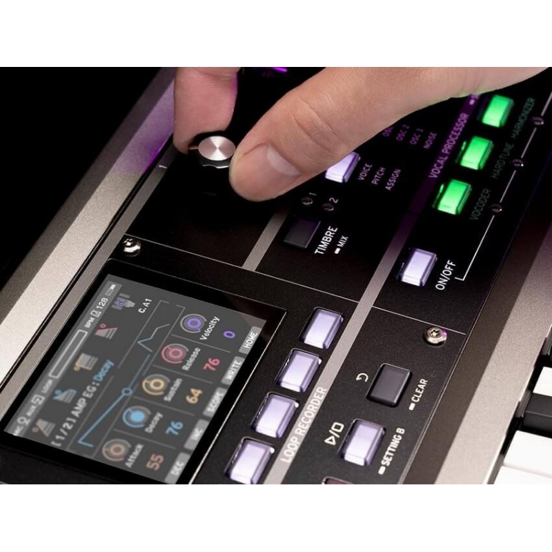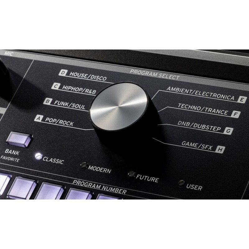 Il pannello di controllo è ora dotato di un display a colori da 2,8'' ad alta luminosità, mentre 5 manopole di editing sono assegnate ad altrettante icone animate sul display stesso, che restituiscono la sensazione di modellare materialmente ogni suono. Il display, inoltre, può trasformarsi istantaneamente in un utilissimo oscilloscopio che visualizza graficamente il risultato di ogni operazione compiuta. microKORG 2 Standard amplia le possibilità del pratico e intuitivo sistema di selezione dei suoni introdotto con microKORG. Un Dial dedicato seleziona il genere musicale: Pop/Rock, Funk/Soul, HipHop/R&B ecc. oppure lo stile generale: Classic, Moder, Future o User, mentre 8 pulsanti dedicati richiamano i Program al loro interno.