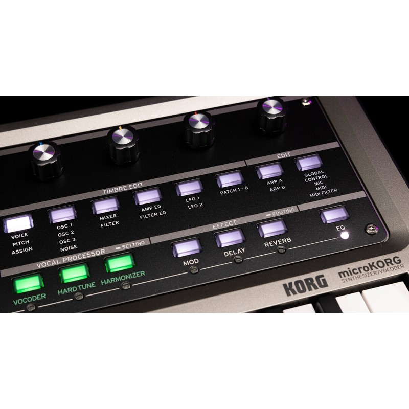 Uno degli aspetti più interessanti del microKORG originale era legato al suo Vocoder interno facile da usare, fornito con un microfono dedicato e in grado di produrre le sonorità più caratteristiche di questo modulo. microKORG 2 Standard possiede ora un nuovo Vocal Processor molto più performante. Infatti, oltre al Vocoder questo processore vocale può generare effetti di correzione Hard Tune indispensabili ad esempio della musica Trap, oppure operare come armonizzatore vocale a 4 parti, con la possibilità inoltre di processare ulteriormente il risultato con gli effetti di riverbero e delay. Anche su microKORG 2 Standard il microfono goose neck è in fornito dotazione per proiettarti subito in performance vocali memorabili!