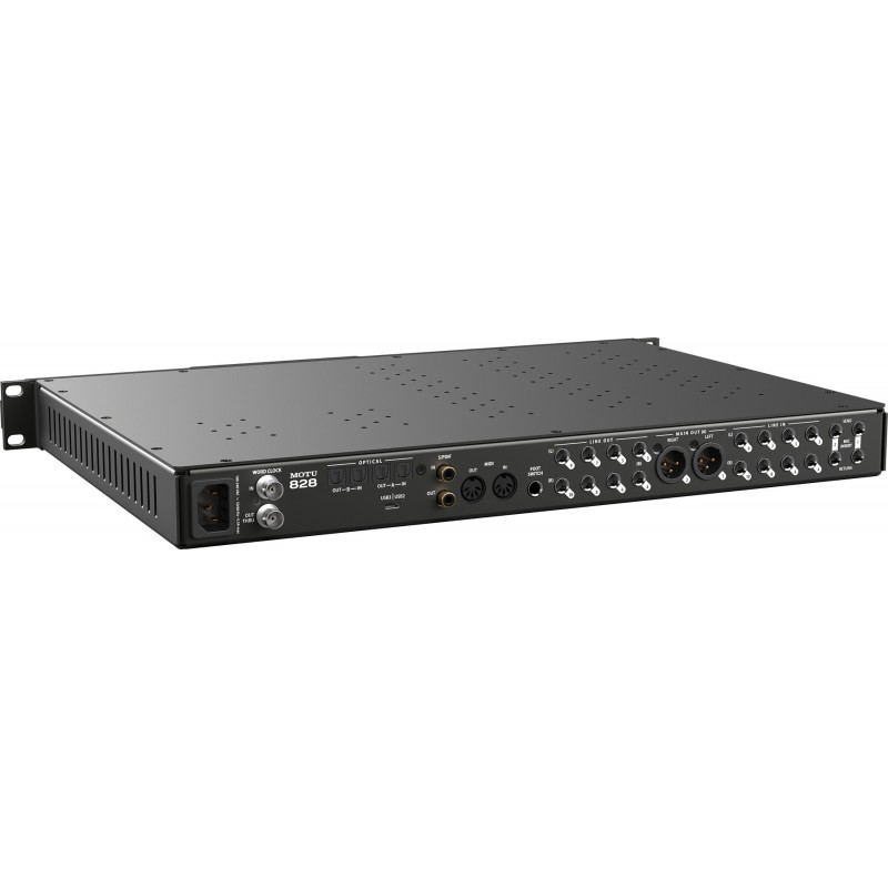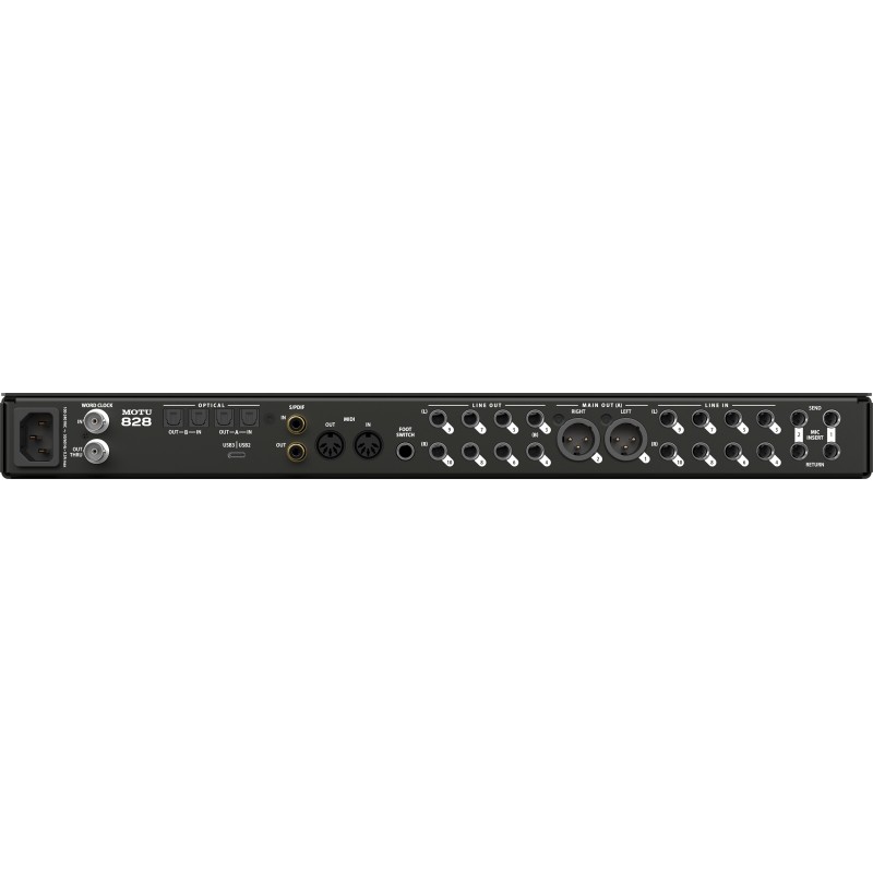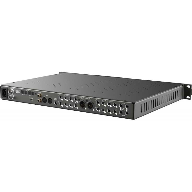 60 canali audio simultanei: 28 ingressi e 32 uscite, inclusi due ingressi combo XLR/TRS microfono/linea/chitarra hi-Z con inserti send/return, 8 ingressi/uscite analogici TRS (livello di linea), uscite principali separate su jack XLR , due banchi di I/O ottici a 8 canali, I/O digitali stereo RCA S/PDIF e due uscite per cuffie sul pannello frontale.