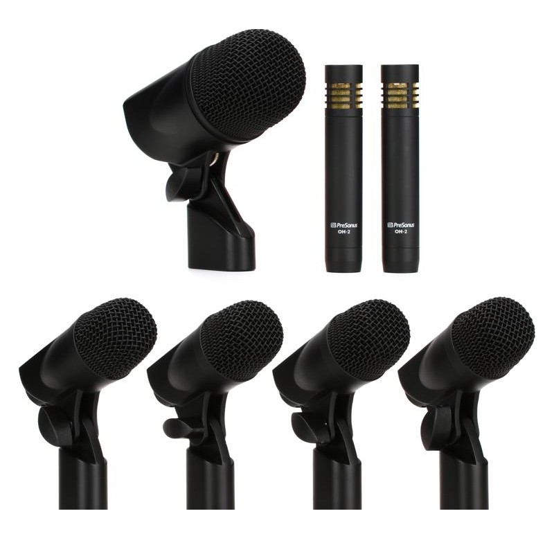 La chiave per un ottimo suono di batteria acustica è catturare ogni elemento individualmente in modo da avere il massimo controllo sul mix. Il set microfonico per batteria PreSonus DM-7 ti offre tutto ciò di cui hai bisogno per catturare in modo autentico la tua batteria e praticamente qualsiasi altro strumento che ti piace. Partendo dalle basi, il microfono per grancassa BD-1 fornisce una risposta in frequenza unica per catturare sia il boom che l'attacco della grancassa per un suono compatto e robusto. I quattro microfoni ST-4 tireranno fuori il meglio di tom e rullanti rimanendo fuori dalla portata del batterista grazie ai supporti per cerchio regolabili inclusi. Per catturare lo sfrigolio dei tuoi piatti e l'atmosfera della stanza, usa i due condensatori a diaframma piccolo OH-2 per aggiungere spazio e movimento alla tua batteria. Con un utile assortimento di microfoni, supporti inclusi e una custodia rigida per il trasporto,