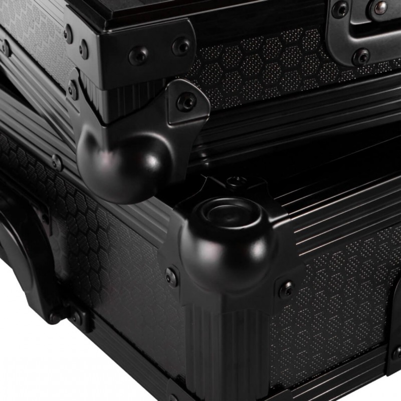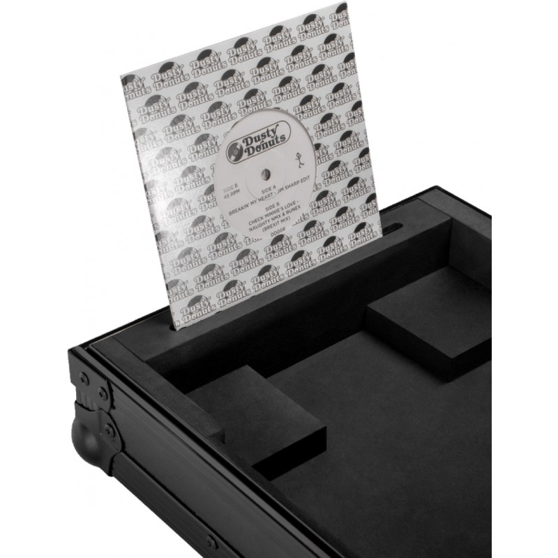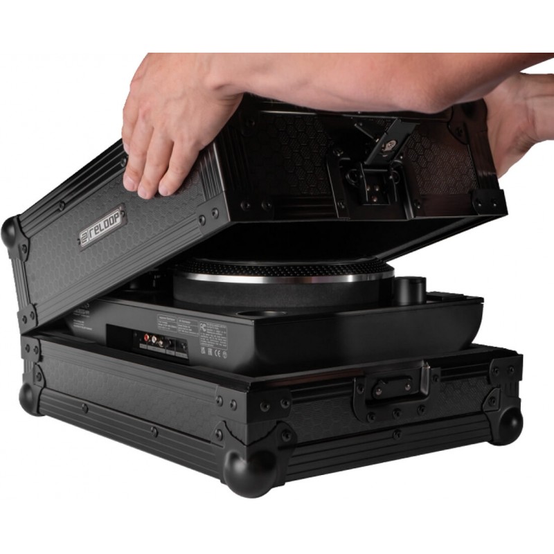 Funzionalità e flessibilità si incontrano Progettata per un utilizzo pratico, la custodia è dotata di un coperchio rimovibile con imbottitura in schiuma per mantenere fermi il giradischi e il piatto per la massima protezione durante il trasporto, di supporto integrato da 7" per un rapido accesso ai dischi e un anello distanziatore per bloccare il piatto in posizione proteggendo al contempo il perno. Che venga utilizzata direttamente nella custodia o impilata con il coperchio per un'altezza di installazione più elevata, questa custodia offre flessibilità senza compromessi. I cavi possono essere riposti ordinatamente nella parte inferiore della custodia, dove la base imbottita offre spazio dedicato per gli accessori. Reloop Premium RP-7 turntable case è il flightcase leggero ma robusto, ideale per DJ itineranti e configurazioni da 7".