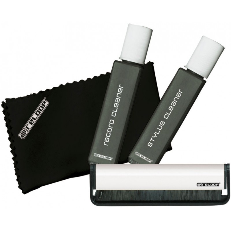 Kit per la pulizia dei dischi in vinile/CD e delle puntine, composto da spazzola con fibre di carbonio modello Gold, spazzola per la puliza della puntina, panno antistatico, 20 ml di liquido per la pulizia dei vinili/CD, e 20 ml di liquido per la pulizia della puntina.