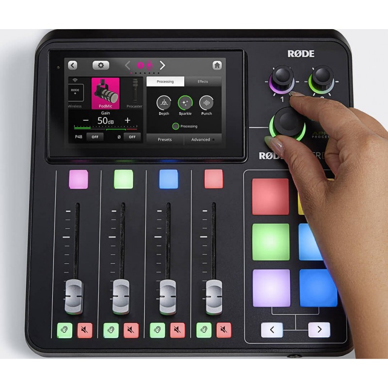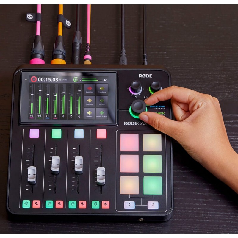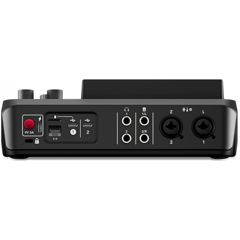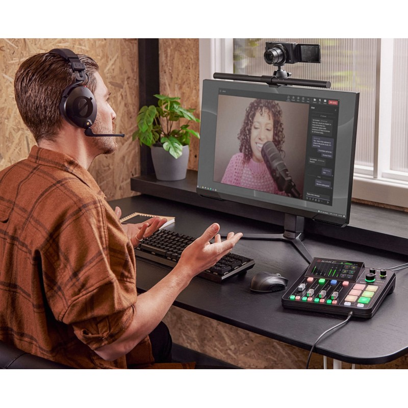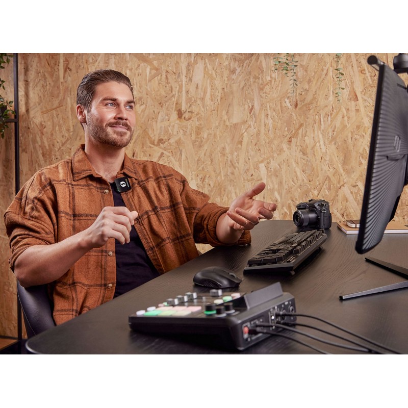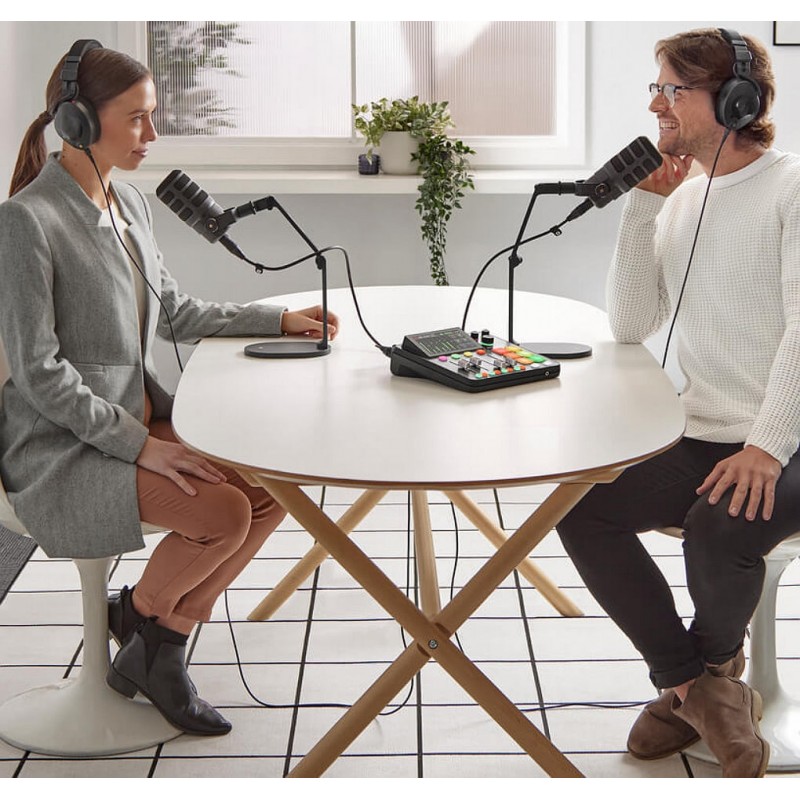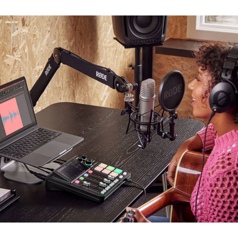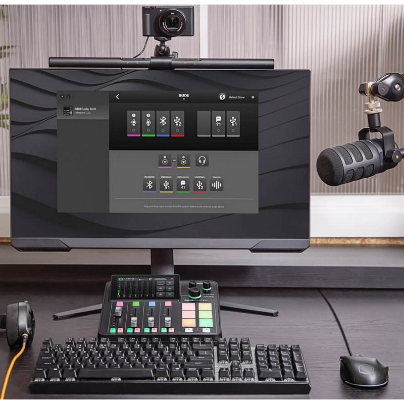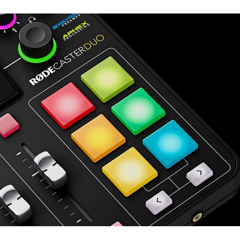 Il RØDECaster Duo è una soluzione di produzione audio all-in-one compatta e incredibilmente potente per podcaster e creatori di contenuti. È dotato di due ingressi combo Neutrik, di alta qualità, per collegare microfoni, strumenti o dispositivi a livello di linea, un ingresso per cuffie TRRS da 3,5 mm e un ricevitore wireless integrato per collegare microfoni wireless R?DE, rendendolo incredibilmente versatile. I preamplificatori a bassissimo rumore e ad alto guadagno, nonché l'elaborazione audio APHEX, di livello da studio, offrono una qualità audio incontaminata, con due interfacce USB-C per il collegamento di due computer o dispositivi mobili e la connettività Bluetooth per un'integrazione perfetta delle chiamate telefoniche. Il RØDECaster Duo è completamente personalizzabile, con sette canali assegnabili singolarmente e sei SMART pad programmabili per l'attivazione immediata di effetti sonori o vocali e altre azioni.