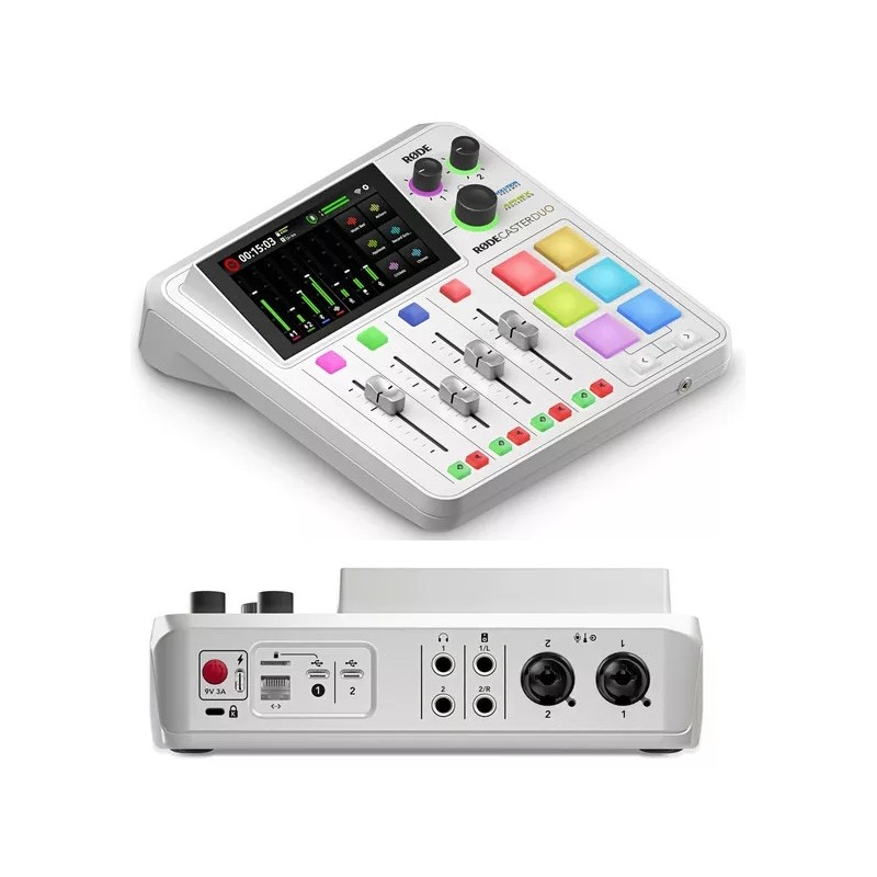 Il RØDECaster Duo è una soluzione di produzione audio all-in-one compatta e incredibilmente potente per podcaster e creatori di contenuti. È dotato di due ingressi combo Neutrik, di alta qualità, per collegare microfoni, strumenti o dispositivi a livello di linea, un ingresso per cuffie TRRS da 3,5 mm e un ricevitore wireless integrato per collegare microfoni wireless R?DE, rendendolo incredibilmente versatile. I preamplificatori a bassissimo rumore e ad alto guadagno, nonché l'elaborazione audio APHEX, di livello da studio, offrono una qualità audio incontaminata, con due interfacce USB-C per il collegamento di due computer o dispositivi mobili e la connettività Bluetooth per un'integrazione perfetta delle chiamate telefoniche. Il RØDECaster Duo è completamente personalizzabile, con sette canali assegnabili singolarmente e sei SMART pad programmabili per l'attivazione immediata di effetti sonori o vocali e altre azioni.