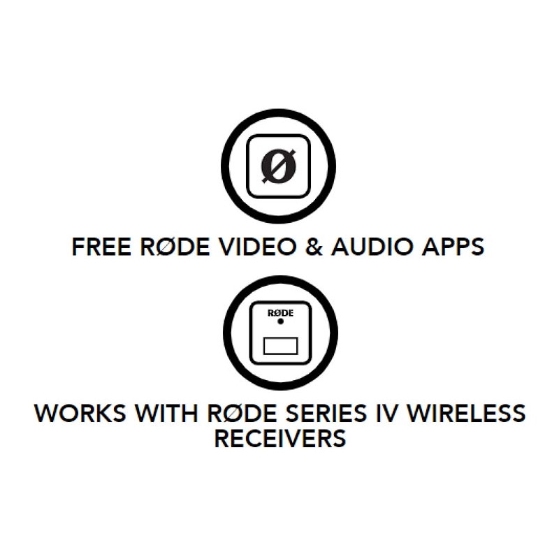Trasmettitore wireless con protocollo Rode Serie IV con segnale digitale a 2,4 GHz e crittografia a 128 bit