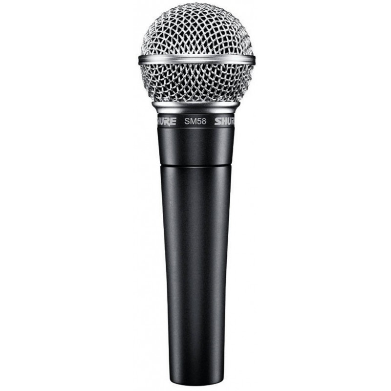 SM58 della Shure è un microfono dinamico con polarità cardioide ottimizzato per la voce, da sempre presente sui palchi e negli studi di registrazione di tutto il mondo. Il filtro sferico incorporato riduce in maniera efficace il rumore esterno (es. vento) e l'effetto pop delle consonanti esplosive. Il diagramma polare cardioide riduce al minimo le sorgenti laterali e posteriori. SM58 presenta una risposta e un timbro ottimizzati per la voce, che lo hanno reso negli anni un vero e proprio standard per artisti e fonici. La robustezza delle componenti, il sistema di supporto antivibrazione e la griglia in acciaio inossidabile ne garantiscono la costanza delle prestazioni e la durata negli anni, anche con uso intensivo e 'aggressivo'.
