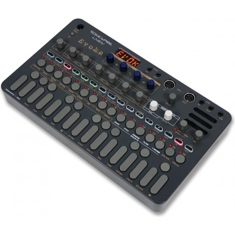 LIVEN Evoke di Sonicware è un sintetizzatore digitale per suoni ambientali e strutturati con sequencer. La generazione di suoni puramente digitali è uno sviluppo completamente nuovo e combina elementi di sintesi sottrattiva con strumenti tradizionali e una speciale modulazione all'indietro chiamata Backtide. I nuovi suoni possono essere creati su quattro tracce ed elaborati con il proprio inviluppo, il filtro multimodale e due LFO . Infine, ci sono i due blocchi di effetti dal buon suono Reverb e Granular. L'attenzione sonora si concentra chiaramente sui suoni sintetizzati, la cui origine potrebbe essere ricercata in una band o in un'orchestra. I due effetti completano lo spettro sonoro in una direzione molto atmosferica, ideale per i suoni ambientali e i cluster sonori serpeggianti.