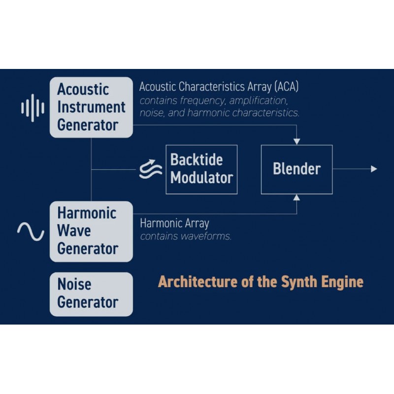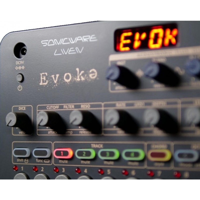 Nel LIVEN Evoke, Sonicware si affida alla sintesi Acoustronic Flux Oscillator con modulazionebacktide, appositamente sviluppata. Questo nuovo tipo di generazione sonora è costituito dagli elementi Acoustic Characteristics Array e Harmonic Array. È possibile aggiungere un generatore di rumore filtrabile. Il Acoustic Characteristics Array (INST) utilizza una selezione di 34 suoni, tutti collocabili nell'area degli strumenti classici a tastiera, a corda, a pizzico e a fiato. Ognuno di questi suoni acustici contiene 256 elementi individuali attraverso i quali la modulazione backtide rotola come una marea in piena. L'Array armonico (WAVE) offre 20 forme d'onda, conosciute principalmente dalla sintesi sottrattiva. Ognuna di esse ha 128 elementi armonici e consente un controllo dell'intonazione nell'intervallo di +/- 2 ottave. Intrecciando INST e WAVE, Evoke offre un ampio spettro di suoni, che vanno dai nostalgici pianoforti e archi drone ai bizzarri vibrafoni.