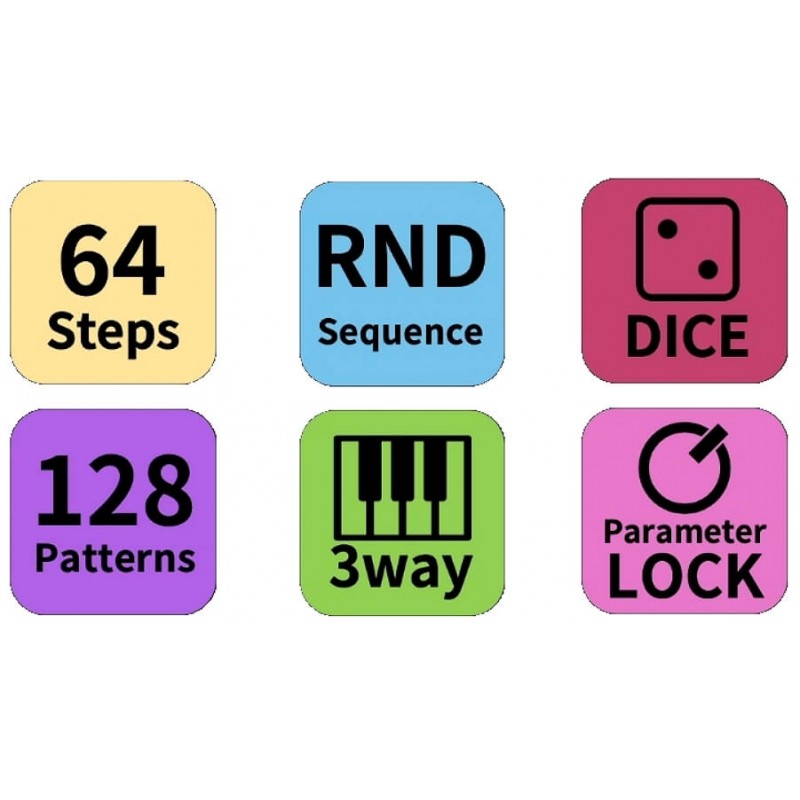 Il sequencer a quattro tracce può essere programmato su live o passo dopo passo nella griglia TR e ha una capacità di memoria di 128 pattern, ognuno dei quali può essere lungo fino a 64 passi. Il blocco dei parametri di registrazione dà vita e varietà ai pattern. I suoni sintetizzati possono essere riprodotti cromaticamente tramite i 27 mini tasti, con un grande vantaggio musicale. Con lo step randomizer, le note programmate nel pattern vengono saltate in modo casuale anziché sequenziale. Grazie alle varie modalità vocali, ogni traccia può essere suonata in modo polifonico, monofonico, legato o come arpeggio; in quest'ultimo caso, sono disponibili numerosi pattern di riproduzione che possono essere incorporati nell'esecuzione dal vivo.