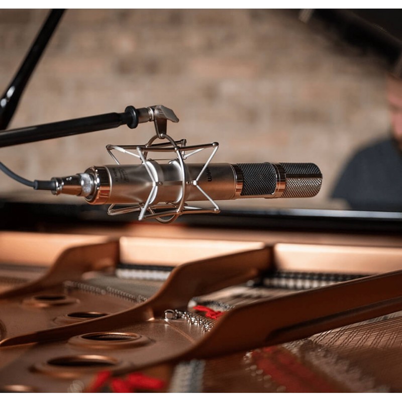 Accessori inclusi: custodia da trasporto personalizzata in tweed, alimentatore esterno IEC con messa a terra, cavo di alimentazione IEC, cavo per microfono a valvola Gotham Premium da 5 metri a 9 pin, custodia per microfono in legno, 2 supporti shockmount