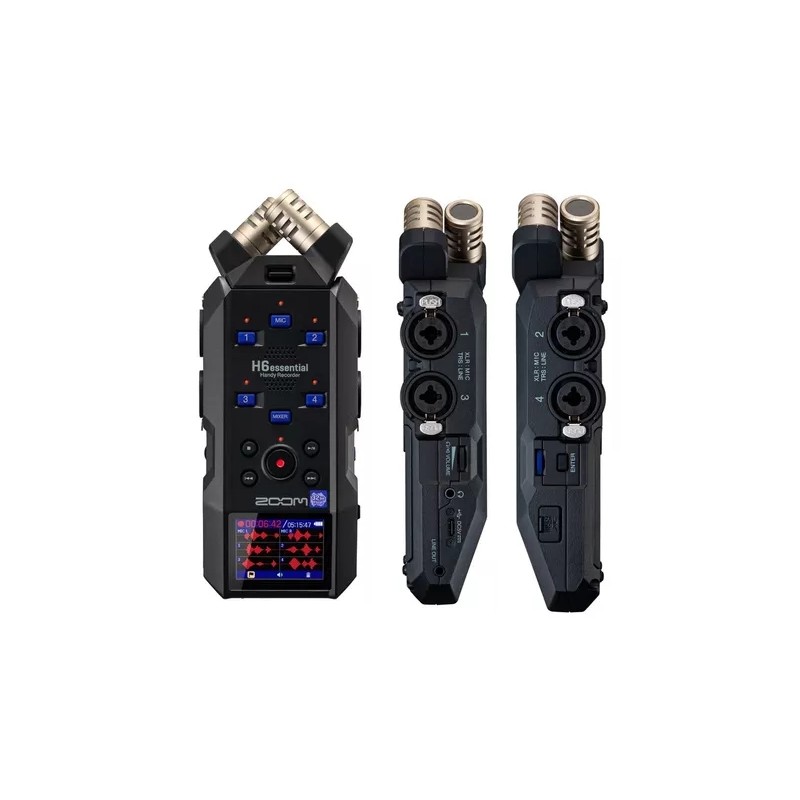 L’H6essential, il nostro registratore palmare più robusto, è una centrale tecnologica per la registrazione. Con 6 tracce di registrazione a 32-bit float, l'H6essential offre una qualità senza precedenti e una versatilità senza pari. Grazie alla tecnologia a 32-bit float e ai doppi convertitori AD, l'H6essential cattura una gamma dinamica enorme. Questo ti offre la capacità di registrare un audio perfetto e privo di distorsioni in qualsiasi condizione. I 4 ingressi combo XLR/TRS sono dotati dei preamplificatori ultra-puliti di Zoom e i microfoni X/Y integrati possono catturare fino allo straordinario livello di 135 dB SPL, equivalente al decollo di un jet. Il sistema a capsule 3.0 dell'H6essential è stato aggiornato per supportare la tecnologia a 32-bit float e offre più opzioni per utilizzare il microfono giusto per ciascuna registrazione. Quando il microfono X/Y non è necessario, stacca la capsula e utilizza il cappuccio incluso per una configurazione a basso profilo. Usa l’H6essential come interfaccia a 32-bit float per il tuo computer o per il tuo dispositivo mobile, mentre contemporaneamente registri tutte e 6 le tracce su una scheda SD. Usa l'adattatore Bluetooth BTA-1* per accoppiarlo con il tuo dispositivo iOS per avviare la registrazione da remoto, regolare il tuo mix, visualizzare le tue forme d'onda e modificare le impostazioni. Con l'adattatore Bluetooth BTA-1* puoi accoppiarlo anche con dispositivi di timecode Bluetooth per la sincronizzazione audio e video.